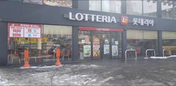 롯데리아입니다. 주차장이 협소하니 차가지고 가실때는 한번 고민해보세요