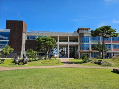 1층 카페 개성있는 음료들 괜찮음. 학교 건물 뒷편엔 저수지를 바라보고있는 소나무숲이 있다.