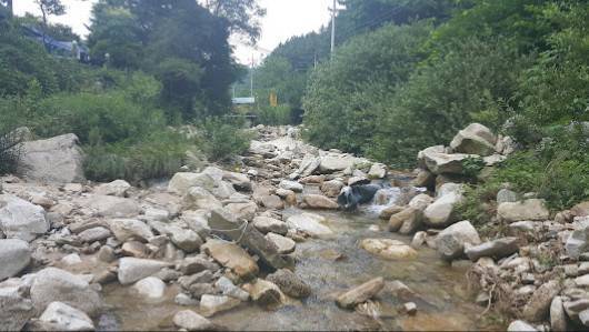 사람들 덜 붐비고 넓직한 바위가 많고, 물이 엄청 맑다. 조용하고 시원하고 물에 오랫잇음 추워요