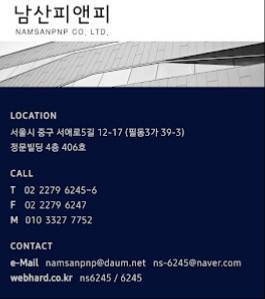 주소: 대한민국 서울특별시 중구 필동3가 39-3 정문빌딩 남산피앤피 4층 406호.