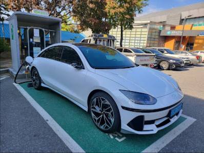 전기차량 충전소가 주차장 입구에 있습니다.