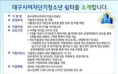 대구가출청소션쉼터 - 중구, 대구광역시