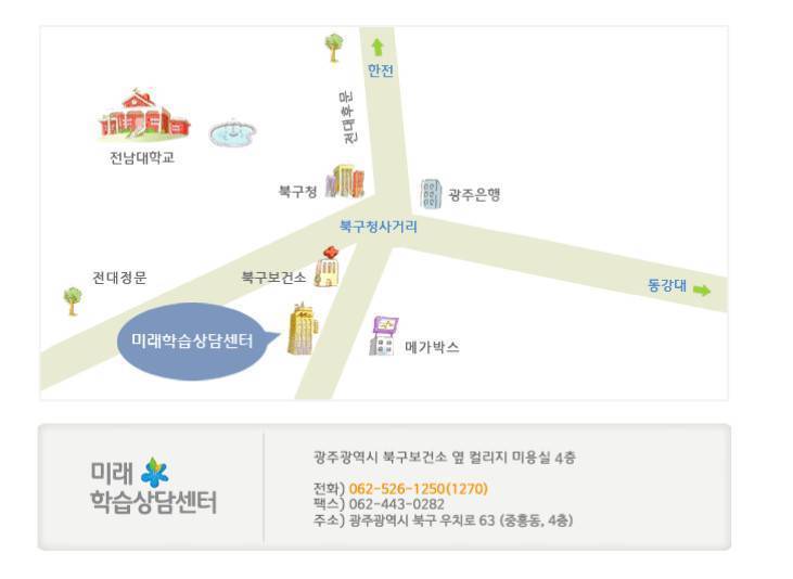주소: 대한민국 광주광역시 북구 중흥동 358-24 미래학습상담센터.