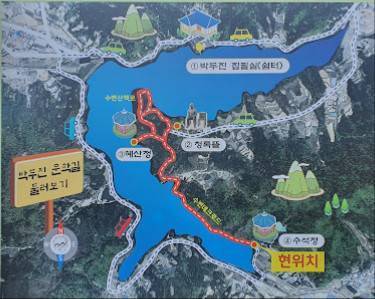 호수 경관과 수변데크가 잘 어울어진 청록뜰과 혜산정이 인상적이며 차분히 걷는데 한시간 정도 소요됩니다.