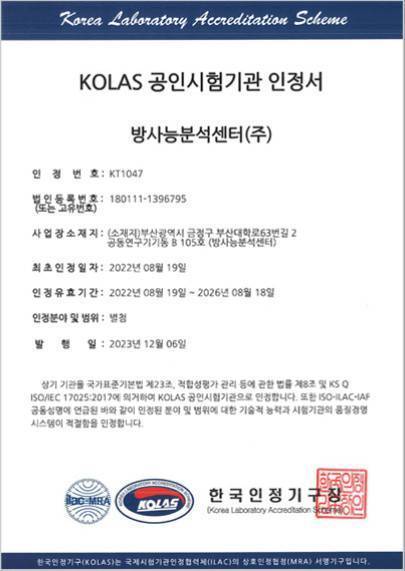 주소: 대한민국 KR 부산광역시 금정구 장전동 40번지 공동연구기기동비 105호 과학기술연구동 방사능분석센터(주) B101호.