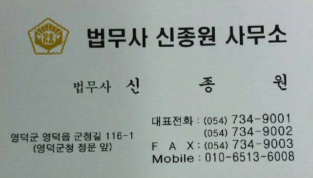 주소: 대한민국 영덕군 법무사신종원사무소.
