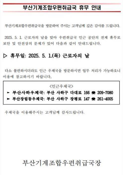 ⏰ 운영 시간 부산기계조합우편취급국