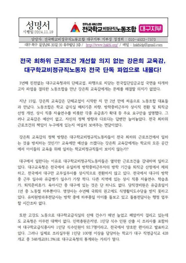📌 의 위치 전국학교비정규직노동조합 대구지부