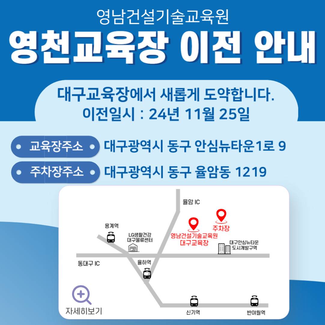 주소: 대한민국 대구광역시 달서구 이곡동 1224 3번지 (주)영남기술교육원.