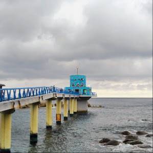 바다에 지어진 건물로 수심 5m를 내려가 유리를 통해 바닷속을 감상할 수 있는 수중 전망대입니다.