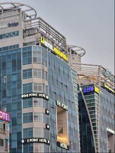 Emplacement compliqué à trouver, l’hôtel est situé au 11ème étage dans un immeuble avec d’autres hôtels , et il est indiqué en coréen… repérer le logo en forme d’aile pour trouver l’hôtel. Entrée pour accéder à l’ascenseur à côté d’un magasin de jeu.