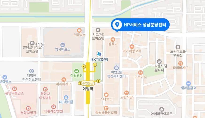 📌 의 위치 HP서비스 성남분당센터
